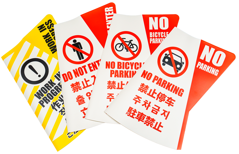 インバウンド対策、建設・製造現場での外国人労働者の増加に伴う安全確保等の観点から、表示内容はより直感的に理解できる必要性が昨今では高まっております。多言語対応版では4ヶ国語表示に併せて、従来の製品とは異なるピクトを採用することで、グローバルな視覚伝達を可能にします。