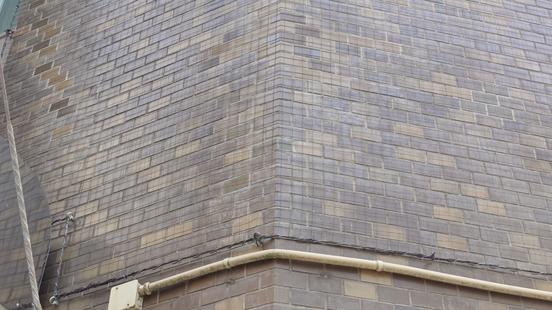 ビルのタイルは濃い目のブラウンだったので、ブラウン色のネットを架設しました。